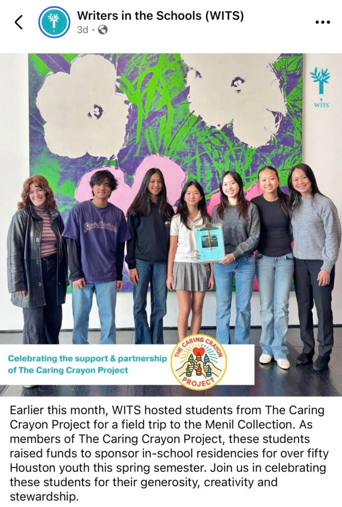 WITS hosted students from The Caring Crayon Project for a field trip to the Menil Collection.